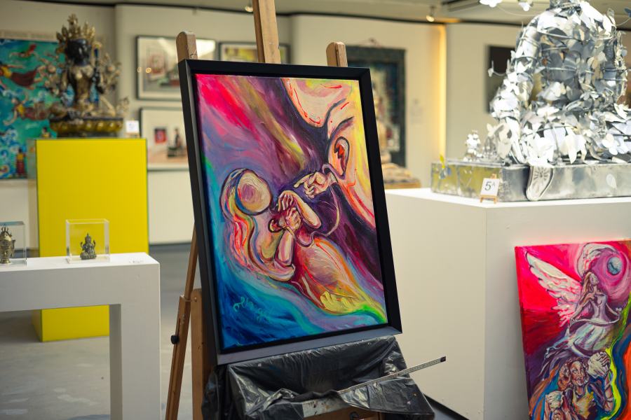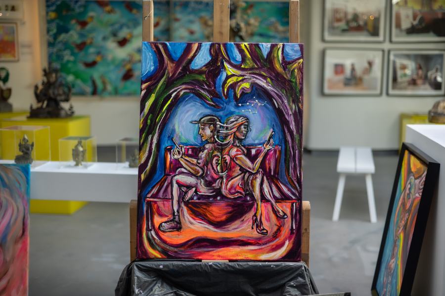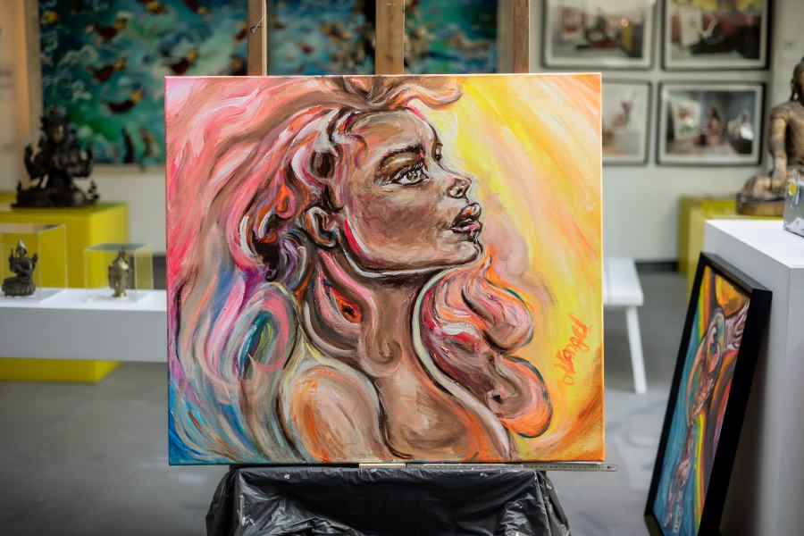 Haar schilderijen vormen geen vaste verhalen, maar momenten die je zelf mag interpreteren. Daarom lag de focus niet alleen op het vastleggen van de kunstwerken, maar ook op de persoon erachter. De interactie met haar eigen werk en de manier waarop beeld en omgeving samenkomen spelen hierin een belangrijke rol.
