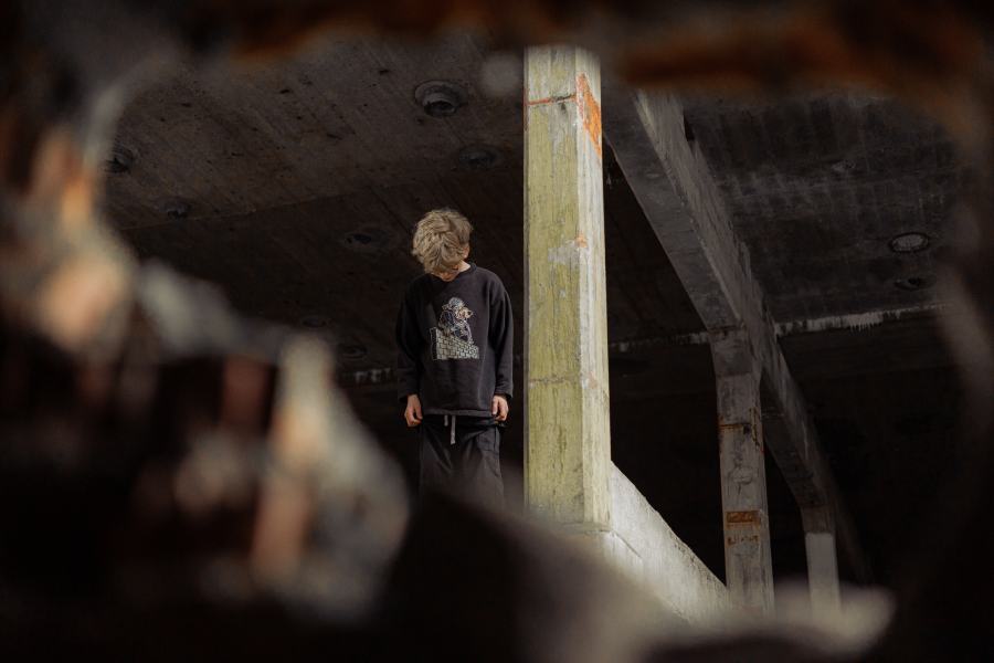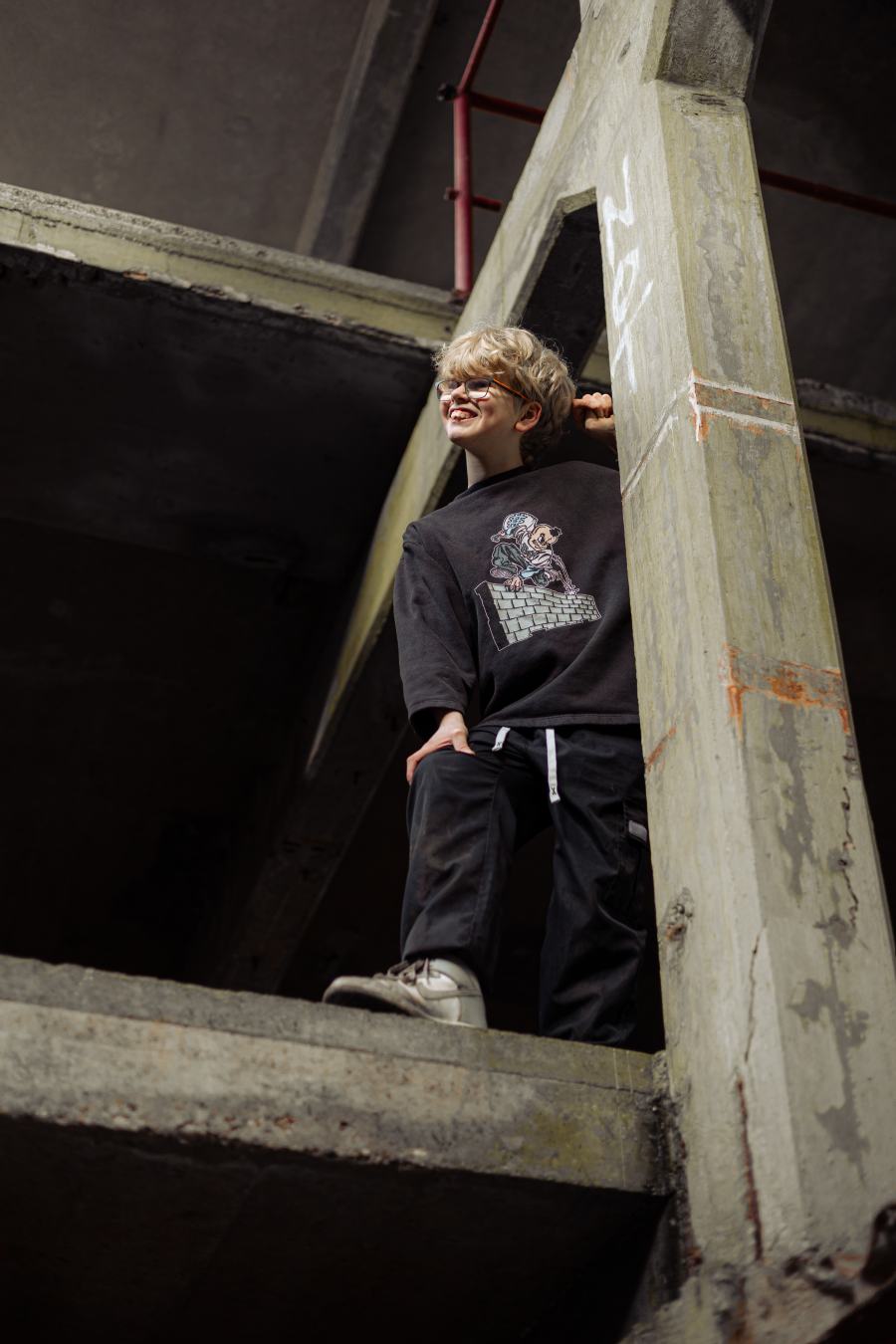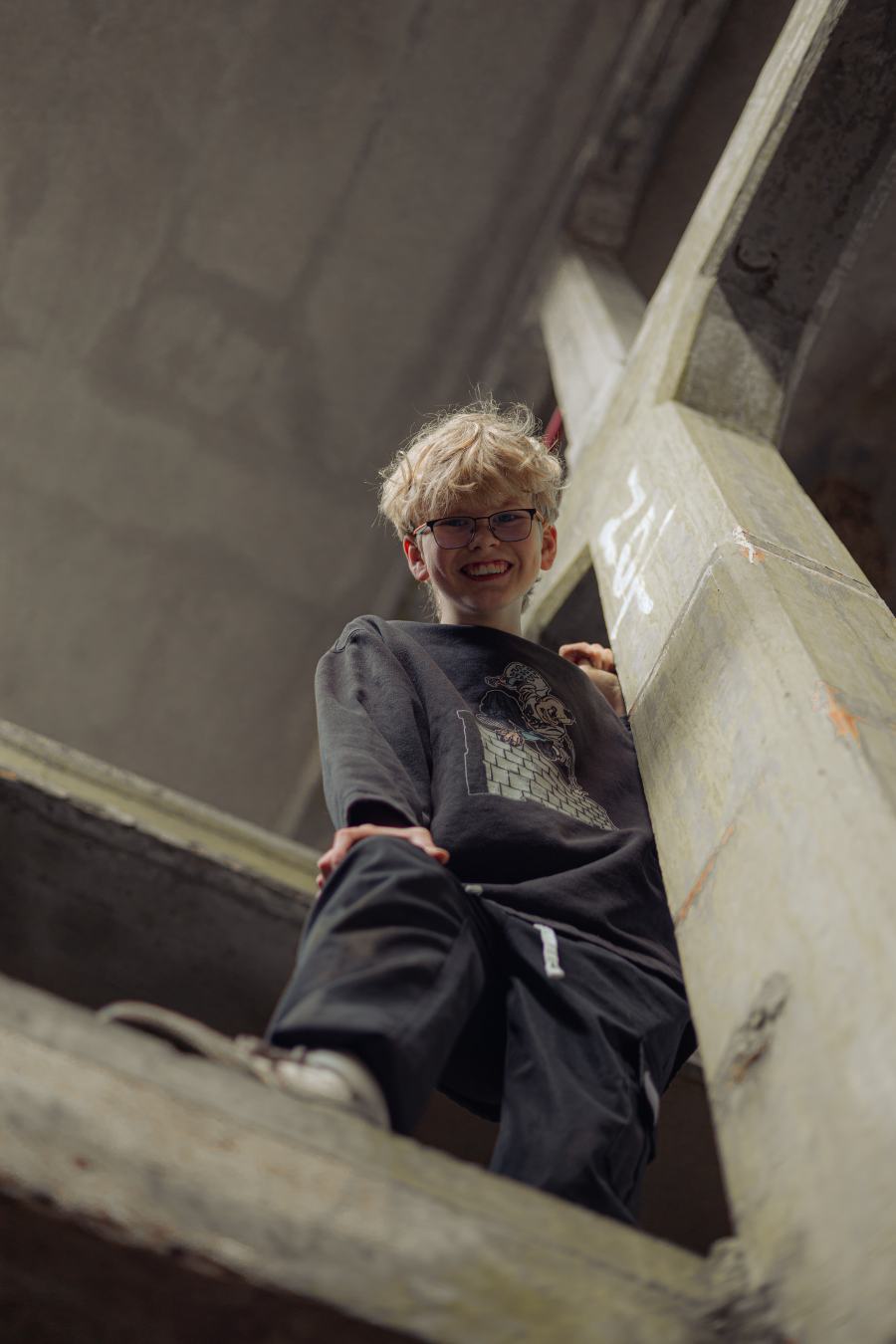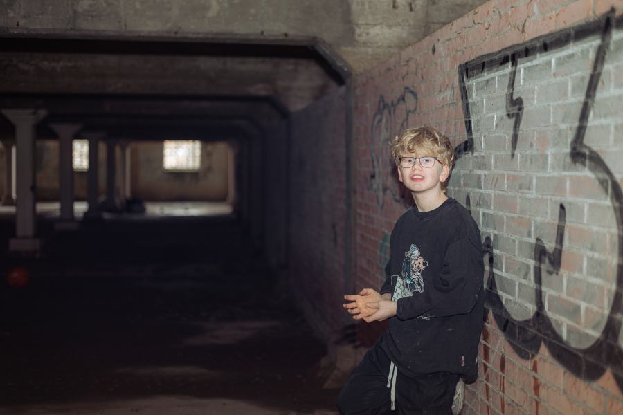 Tijdens de shoot stond de sfeer van de locatie centraal. Afbladderende muren, verweerde structuren en het natuurlijke licht dat door kapotte ramen naar binnen valt zorgen voor een unieke en rauwe uitstraling in de beelden. Het contrast tussen de locatie en het onderwerp geeft de foto’s een sterk visueel karakter.